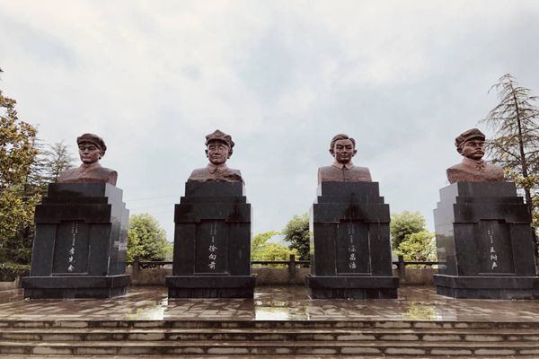 虽然天公不做美,在路途中便下起了暴雨,但是队员的热情却并未因天气而消退。随着讲解员的介绍,队员们了解到将帅碑林现已建有红四方面军主要将领纪念像园、碑林长廊、红军将士英名纪念碑、红军陵园等十四大景点,是目前中国最大的红军碑林。跟着讲解员的步伐,队员们首先来到烈士陵园,沉痛地哀悼着为革命献出自己的青春和生命的烈士们。那一块块无声的墓碑告诉着今人幸福得来之不易。青山处处埋忠骨,何须马革裹尸还,埋骨于此的烈士不仅有巴中市本地人,更有离家万里者被安葬于此。一个共同的理想消除了地理的隔阂,一个共同的使命让一群相隔千里的人汇在了一起,对革命事业的执着都一点一滴的渗透在这墓碑里。队员深深地感受到红军战士们的执着与坚定,同时对红军烈士献上了自己由衷的敬意。